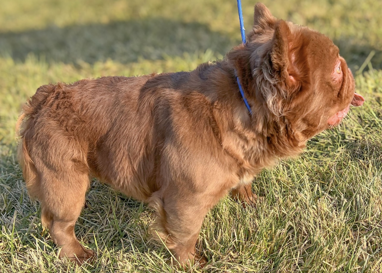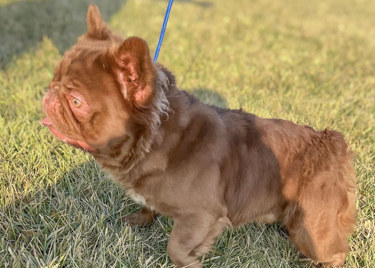 Wonka Jr. is the definition of excellence in a French Bulldog. While he may not be the tiniest, his incredible structure is everything the breed should embody, wide chest, strong bone, perfect head, and balance that makes him truly stand out. He is 4 panel health clear, docile, obedient, and never carries an alpha attitude, making him a dream both at home and in the breeding program.